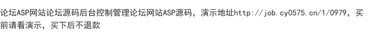 论坛ASP网站论坛源码后台控制管理论坛网站ASP源码,演示地址http://job.cy0575.cn/1/0979,买前请看演示,买下后不退款 以萌养阵,方可长命百岁。 |