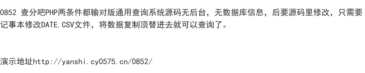 | 阅:84031 | 回:3 | 0852学生成绩查询查分PHP两条件都输对版查询系统源码无后台直查 |