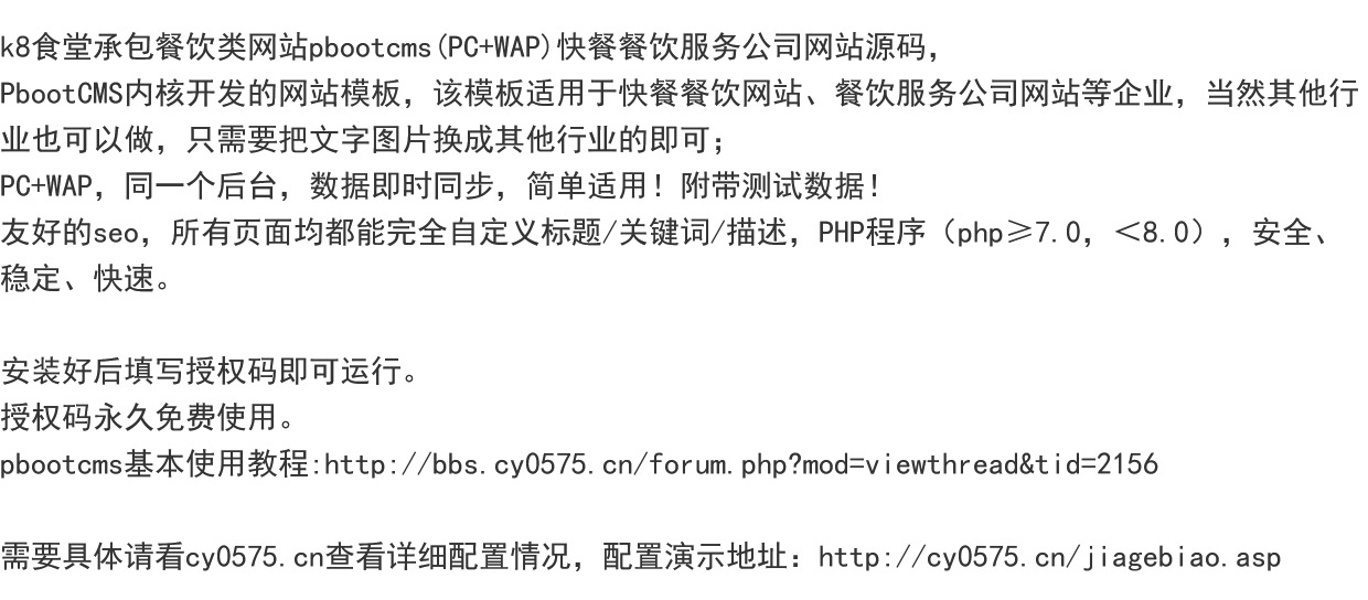 k8食堂承包餐饮类网站pbootcms(PC+WAP)快餐餐饮服务公司网站源码