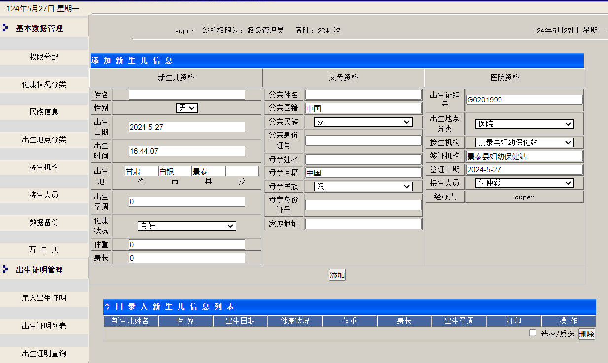 | 阅:52439 | 回:3 | K22出生证明登记录入查询健康信息登记查询ASP源码出生证明管理 |