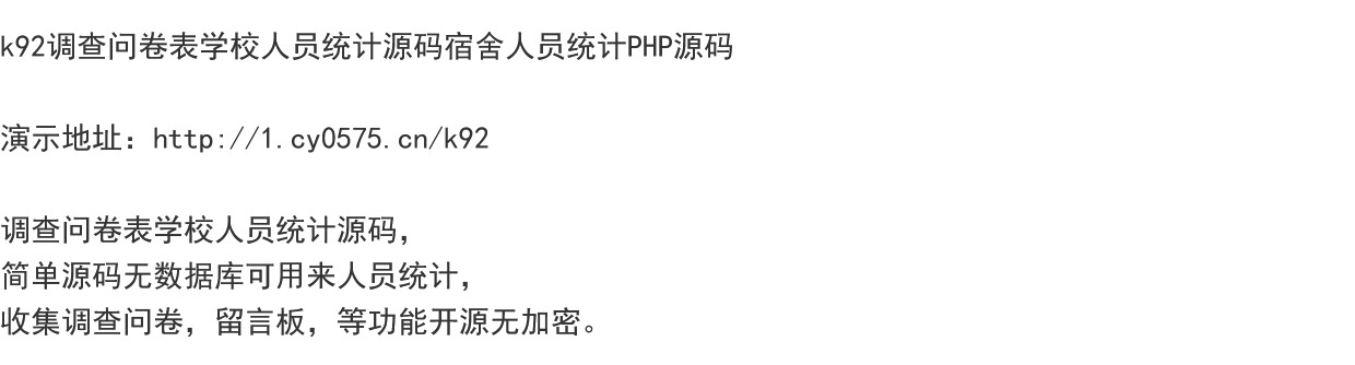 » k92调查问卷表学校人员统计源码宿舍人员统计PHP源码