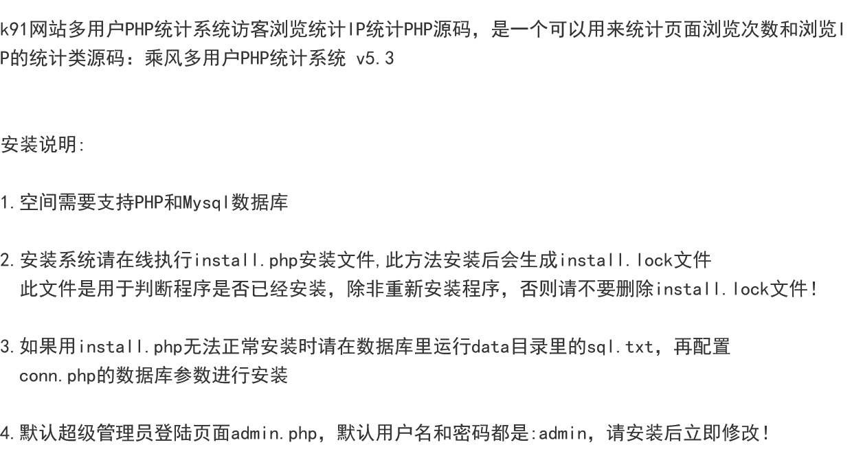 » k91网站多用户PHP统计系统访客浏览统计IP统计源码SQL