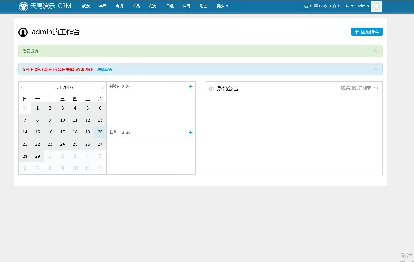 特点:可给用户申请自己的客户管理系统,