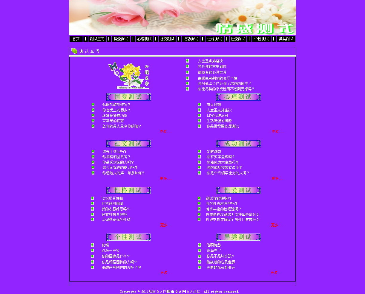 | 阅:72835 | 回:0 | 女人网情感测试源码测试空间情爱心理社交成功性格性爱个性2071 |